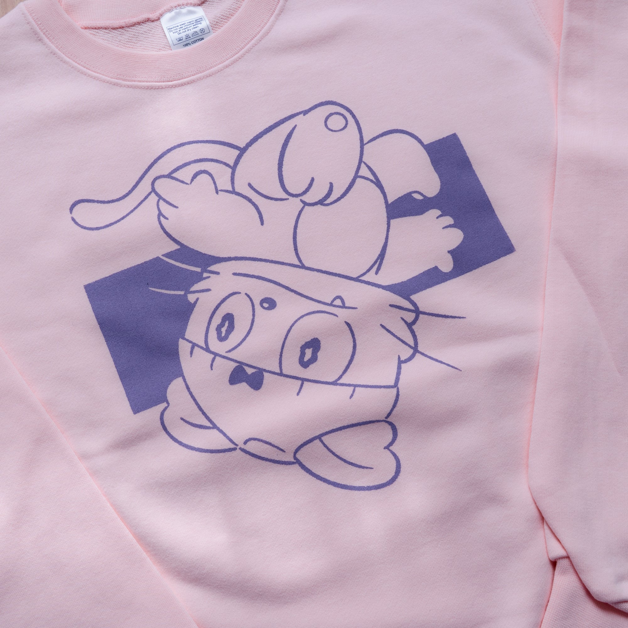 くるりんと逆さまのパンティキャッツをライトピンクカラーのボディにプリントしました!ピンク×パープルで元気に春を迎えましょう◎